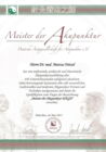 14 Jahre nach erstmaliger Anwendung der Therapie mit Akupunktur Verleihung der Qualifikation „Meister der Akupunktur“